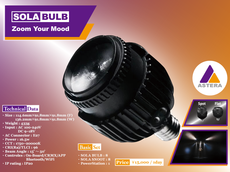 Lumenradio受信機内蔵、アプリコントロール可能。